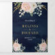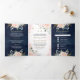 Gold Blush Pink Floral All in One Navy Wedding Tri-Fold Invitation