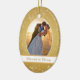 White stars on a gold bokeh background frame your own photograph on this wedding keepsake Christmas ornament. Near the bottom is a white banner lined in matching gold that holds your custom text. The back of the ornament has the same gold frame, with two more text fields in gold. Save that wonderful memory forever with this Holiday keepsake, which can also be modified for any anniversary.