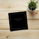 A sleek black earring display card features a slim gold effect border, refined modern typography, and two subtle printed hole markers to position studs neatly while keeping focus on the jewelry. Ideal for shop windows, Etsy packaging, and boutique orders, the minimalist layout leaves room for a business name and address on the reverse and can be customized for brand colors and fonts. Both the alignment markers and the metallic look are printed.