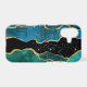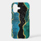 Gold Border Teal Agate Sparkle Monogram iPhone Case