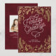This holiday card features hand drawn botanicals with faux gold foil on a rustic textured red background. Select a die-cut shape or textured paper for an extra special touch. Available in additional formats. Visit the shop to see more pieces in this design.