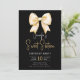 Gold Bow Coquette Script Sweet 16 Party Black Invitation