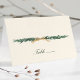 This place card features a greenery border accented with a gold ribbon, with the couple’s initials on the back. For more advanced customization of this design, please click the DESIGN TOOL BUTTON above! Matching items are also available.