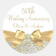 Gold Bow Leaf White 50th Wedding Anniversary Classic Round Sticker