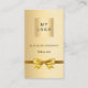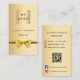 A faux gold looking background. Decorated with a golden bow. Personalize and add your business logo, name, title and contact information. Add your website url/link to the Qr code. With Facebook and Instagram icons. Black text.