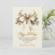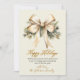 Gold Bow Watercolor Foliage Beige Christmas Holiday Card