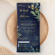 Gold Branch Eucalyptus Leaves Navy Blue Wedding Tri-Fold Invitation