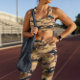 The dainty interlinked rosette design at the waist is truly unique. The poly-spandex makes for a nice fit and available in sizes 0-16. The printing is vibrant and eye-catching.
