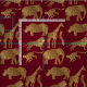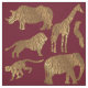 Gold Brown Stripe Jungle Animals on Burgundy Fabric