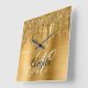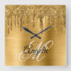 Gold Brushed Foil Glitter Drip Fancy Monogram Square Wall Clock