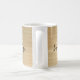 This elegant personalized coffee mug features a monogram and first name in modern black and white script on a gold brushed metal background.