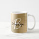 Gold Brushed Metal Black White Script Monogram Coffee Mug