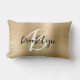Gold Brushed Metal Black White Script Monogram Lumbar Pillow