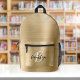 Gold Brushed Metal Black White Script Monogram Printed Backpack