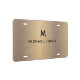 Add a touch of elegance to your vehicle with a gold brushed metal license plate featuring a girly script monogram. Stylish and personalized for a standout look.