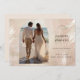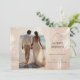 A modern elegant design features wind+blown gold brushed palm leaf against a warm sunfilled, pale blush color background. Easily personalize your personal details of choice, including your favorite photo along with your monogram on the back. The perfect boho summer wedding for any warm oceanfront seascape theme.
