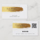 Gold tones brushstroke on a white background accented with a gold geometric frame. QR code is optional.