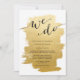 Plain white envelopes are included with paper invitations and will come to fit the invitation size you select. If you don’t need the envelopes, you may choose to not receive them by selecting the dropdown below "Envelopes" and choosing "None." If you’d like to have a design on your envelopes, you can browse all of these available envelopes to find the design that complements your Gold Brushstrokes We Do Wedding Invitation.