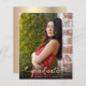 Be proud, rejoice and showcase this milestone of your favorite grad! Send out this girly, stunning, simple, modern, personalized photo budget announcement invitation for an event to remember. A fun, playful visual of faux gold script handwriting, cute, playful hearts, and glitter confetti dots, along with her name, class year, and school, overlay the photo of your choice. Personalize the custom text with your grad’s name, school and class year on the front. On the back, add your personal note, next school she’s attending, party information, etc., in black typography, on the faux gold foil background. Guaranteed to add stylish fun to their special occasion!