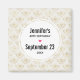 Save the date magnet with an elegant pattern with gold colored bumble bees in a repeating pattern on a cream colored background.
