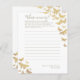 Gold boho butterflies and glitter (digital, not real foil!) decorate this simple and elegant custom bridal shower "Whose memory?" game card that features modern script calligraphy. Personalize it fully, with the bride's name and the date.