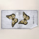 Enjoy your day at the beach or poolside with a Gold Butterfly Floral Personalized Beach Towel. Towel design features a pair of vibrant butterflies resting on a white floral vine against a light gray grunge background. Additional gift items available with this design as well as a variety of colors.