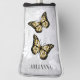 Protect your golf clubs with this unique Gold Butterfly Floral Personalized Golf Head Cover. Cover design features a pair of vibrant butterflies resting on a white floral vine against a light gray grunge background. Additional gift items available with this design as well as a variety of colors.