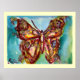 Whimsical gold red pink butterfly in Spring .Original watercolor painting with golden and silver foil by Bulgan Lumini (c)..