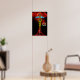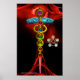 GOLD CADUCEUS AND 7 CHAKRAS IN RED FRACTAL ROSE POSTER