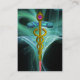 GOLD CADUCEUS IN GREEN BLUE TEAL LIGHT WAVES BUSINESS CARD