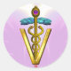 GOLD CADUCEUS VETERINARY SYMBOL Pink White Classic Round Sticker