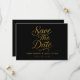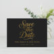Make a statement with this romantic gold calligraphy save the date card on a sleek black background. Featuring a horizontal layout and a QR code for easy RSVP, this design is perfect for modern, elegant, or formal weddings. Fully customizable with your details.