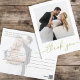 This design features a modern simple gold calligraphy script, a minimalist minimal two 2 photo, a wedding photo photography couple, a basic clean contemporary template, an elegant typography script text font, a photo wedding thank you cards, a custom customized personalized design, a golden handwritten lettering font, a creative simplistic elegant script, a calligraphy wedding budget friendly thank you cards