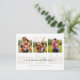 this design features a gold calligraphy script multi photo, with a QR code website online URL, with a scan for more information info, a postcard save the date, a simple minimalist 4 four picture, with a vellum clear photo overlay on the back side, a modern classic save the date, for wedding engagement engaged couple, a trendy stylish calligraphy script, a creative simple typography style, a budget friendly wedding postcard