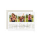 this design features gold calligraphy script multi photo, a simple minimalist 3 three picture, a modern classic save the date, a wedding engagement engaged couple, a trendy stylish calligraphy script, a creative simple typography style, an editable simplistic contemporary design, a monogram monogrammed initial back side, a photo collage simple clean grid, a beige tan gold golden color