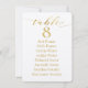 Swashed font gold colored calligraphy writing against a warm white felt paper for table chart cards.
