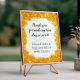 I purchased a 24x36 Basic Black Poster Frame and Easel (Both from Walmart) and put the sign in the doorway. .