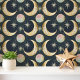 Transform your space into a celestial dreamscape with this enchanting moon and stars wallpaper. Golden crescent moons, accented with delicate floral details, shimmer against a deep blue starry sky, creating a captivating and magical atmosphere. This peel and stick wallpaper is easy to apply and remove, making it perfect for adding a touch of whimsical charm to any room.