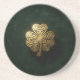 Premium stone coaster featuring a 3D metallic gold shamrock with intricate Celtic knotwork. The deep forest green background and golden details provide a sophisticated "Celtic Academia" look. Durable and stylish, these are perfect for St. Patrick's Day hosting or as a year-round gift for lovers of Irish culture.
