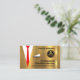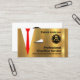 Card features a creative gold suit with a red tie design. Towards the right is a vertical gold stripe that has your prestigious name and a chauffeur's logo you can use, at the top. This is followed by the business name and its contact details.