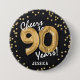 Toast to 90 years with our custom Black & Gold birthday button! This design showcases a charming chalkboard backdrop adorned with faux gold helium balloons in the age '90' with elegant white script, and a dazzling gold glitter confetti border. The perfect accessory for any 90th birthday celebration!