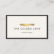 A gold chef's knife along with your name or business name creates an eye-catching and professional logo on this classic business card design. Perfect for catering companies, personal chefs, restaurants, kitchen supplies, etc. © 1201AM CREATIVE