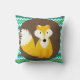 Kids who love foxes and bright, fun designs will love this cute fox throw pillow featuring a gold chevron stripe fox on a brown circle with a chevron striped brown, aqua, green, and white background. Perfect for his bedroom, the playroom, nursery, or recreation room, this fox pillow is sure to be a great addition!