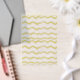 Enhance your wedding or party invitation with this translucent vellum paper overlay. The design includes a gold-colored chevron stripe pattern with a rough, uneven, hand-drawn look. Overlay it with a printed photo or your text beneath on an invite.