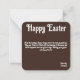 This customizable Easter greeting card features a delightful illustration of Easter festivities. The design features a charming chocolate rabbit surrounded by decadent chocolate treats and whimsical golden accents. The sophisticated color scheme of chocolate brown and gold adds an element of luxury and elegance to the card. The back of the card includes customizable messages to send warm wishes for the holiday. The card is perfect for anyone looking to send a stylish and heartfelt Easter message to their loved ones.
