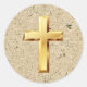 This Elegant Classic Holy Faith Gold Christian Sticker features a Gold Cross design on a cream texture pattern background.