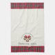stylish red black tartan,rustic christmas custom monogram,personalized customized kitchen towel,personal name check pattern,scottish checked checkered dishcloth,add your own royal text,merry xmas family surname,fancy plaid initialed initial,classic traditional golden bells,christmassy xmasy british bell