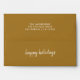 Share festive cheer in elegant style with this simple and modern “Happy Holidays” design featuring handwritten script typography on a chic gold background. The clean minimalist layout and elegant lettering make it a timeless choice for your Christmas cards, gift tags, stickers, or stationery. Personalize the greeting or name to create a unique design that reflects your own festive style. Perfect for pairing with matching gold holiday pieces, this custom design brings sophistication and warmth to your seasonal collection. A stylish, modern option that combines a touch of luxury with understated simplicity to help your Christmas designs stand out beautifully this holiday season.