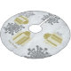 Celebrate the season with this charming Gold Christmas Gift Tree Skirt. Featuring a festive Christmas gift design adorned with ribbon and bows, it’s set against a cozy winter theme with gently falling snowflakes. The cheerful greeting Merry Christmas is styled in elegant script, while the simple layout keeps the design timeless and versatile. Perfect for showcasing your holiday presents, this skirt makes a beautiful finishing touch to your Christmas tree accents and seasonal décor.