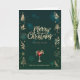 Gold Christmas Pine Tree,Branches Cocktail Green Holiday Card